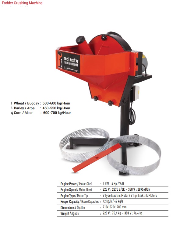 Les broyeurs à grains permettent de broyer les céréales, légumes secs et pains de maïs selon les modèles et diamètre des grilles utilisées, du concassage à la farine. Les rendements dépendent toujours du type de céréale et de leur degré d'humidité.